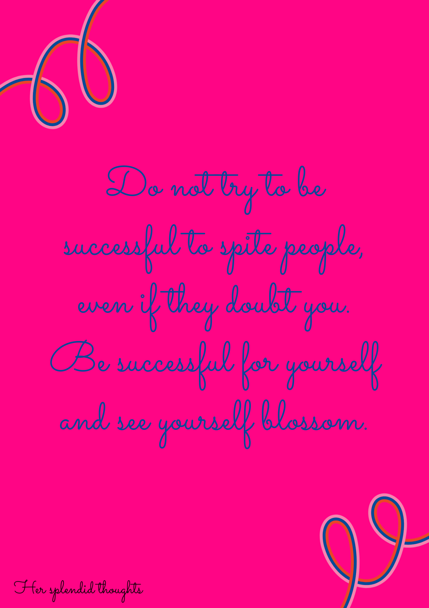 One day, someone casually mentioned that Blinkers had said, “Isn’t it HerSplendidThoughts? She’ll come back.” That comment hit me and wrenched my heart. It resurfaced old wounds, reigniting my drive to prove him wrong. I never asked him if he actually said it, but the possibility was enough to fuel my determination. Yet, when I considered another career move. This time, a friend asked a question that stopped me in my tracks: “Are you doing this for him or for you?”