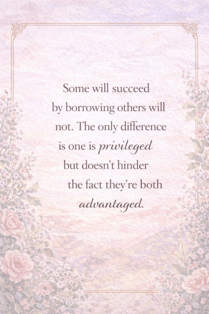 Some people will succeed by borrowing — borrowing capital, borrowing credit, borrowing every ounce of financial leverage they can access just to move their dreams one step forward. Others will never have to take that route. They are privileged with access: access to funds, to networks, to family support, to capital that comes without interest, without paperwork, without fear.